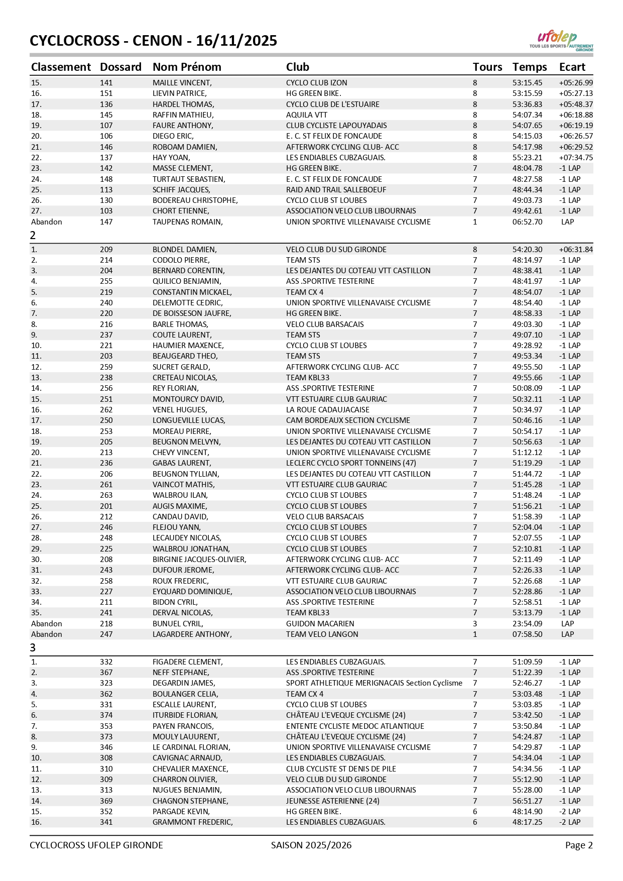 - Vendredi 21 novembre 2025 : Remise des challenges cyclosports UFOLEP 33 et établissement des calendriers cyclosports, cyclotourisme et sports natures pour la saison 2025/2026