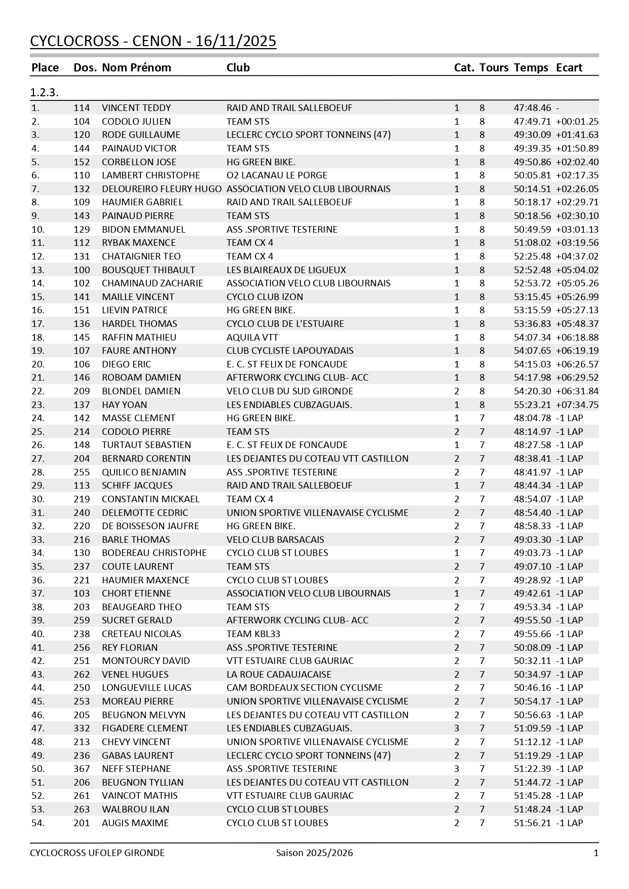 133 coureurs étaient engagés dont 7 Loubésiens sur le cyclocross de St-Félix de Foncaude